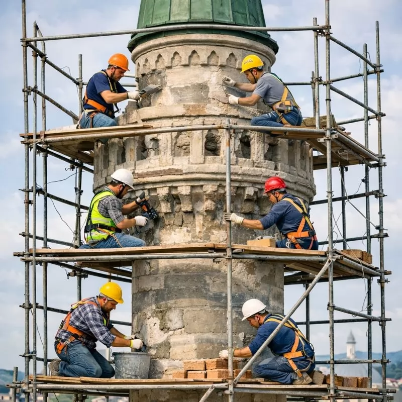 Minareler; yükseklikleri ve sürekli dış etkilere maruz kalmaları nedeniyle zamanla çatlama, dökülme ve deformasyonlar yaşayabilir. Minare tamiratı hizmetimiz kapsamında öncelikle teknik keşif yapılır, ardından betonarme ve taş yüzeylerde aslına uygun onarım çalışmaları uygulanır. Statik dayanım güçlendirilerek, minare hem güvenli hem de uzun ömürlü hale getirilir.